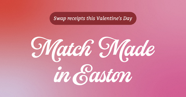 Now in its third year, the Valentine’s receipt-swap promotion runs Friday, Feb. 6, through Sunday, Feb. 15, pairing downtown businesses as official Easton “couples.” Customers who shop or dine at one participating location can bring their receipt to its partner business to unlock exclusive discounts, freebies, and special experiences.